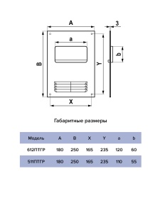 Площадка 612ПТГР торцевая с фланцем и решеткой горизонтальная для прямоугольного воздуховода (120х60 мм, 180х250 мм)