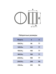 Соединитель 125СКц с обратным клапаном для круглых воздуховов из оцинкованной стали (D-125 мм)