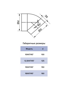 Колена круглые 45° ККП для соединения воздуховодов соответствующего диаметра под углом 45°. Соединение осуществляется напрямую с воздуховодами.