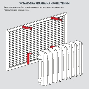Кронштейн для экрана универсальный металлический применяется для установки декоративных экранов на радиатор отопления. В упаковке комплект предназначенный для установки одного экрана.