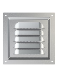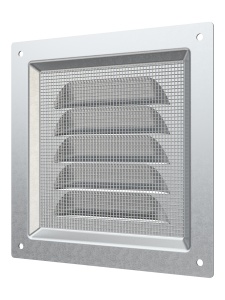 Вентиляционная решетка МЦ изготавливается из оцинкованной стали. Имеет наклонные жалюзи и антимоскитную сетку для защиты от насекомых. Сетка устанавливается в специальном углублении.