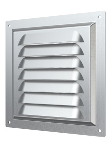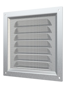 Вентиляционная решетка МЦ изготавливается из оцинкованной стали. Имеет наклонные жалюзи и антимоскитную сетку для защиты от насекомых. Сетка устанавливается в специальном углублении.