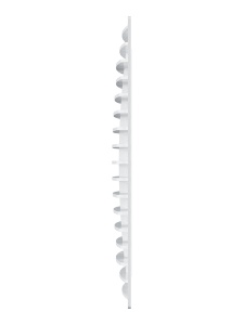 Прямые жалюзи решетки Г обеспечивают большую пропускную способность по сравнению с наклонными. Поэтому изделие подходит для помещений, в которых требуется более интенсивный воздухообмен. Имеет небольшую толщину (11–13 мм). Закрытый контур решетки скрывает неровности вентиляционного канала.
