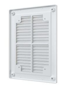 Вентиляционная решетка Р состоит из двух частей: рамки и решетки с жалюзи. Решетка не крепится непосредственно к стене или к потолку, а вставляется в рамку, которая монтируется на поверхности. Это позволяет легко снимать изделие для обслуживания: необходимо достать решетку из рамки, а затем также легко вернуть на место. Решетка оснащена наклонными жалюзи, которые помогают скрыть вентиляционный выход, а также антимоскитной сеткой для защиты от насекомых. Решетки Р представлены также в белом, коричневом и черных цветах.